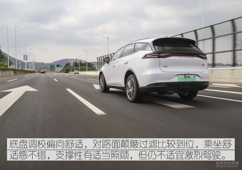当然,底盘调校是偏向舒适的,对路面的颠簸过滤比较到位,乘坐舒适感不错,这也很符合它的定位。这一代唐DM悬挂的支撑性有适当照顾,快速过弯或变线时侧倾不算太夸张,不过较高的重心以及较重的车身,决定了它依然不适宜太激烈的驾驶。