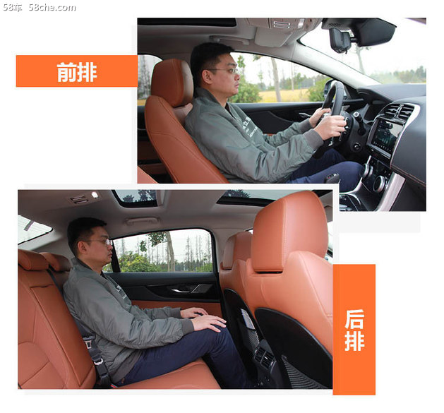 经过加长,XEL的后排空间得到很大的改善,尤其是腿部空间,不过因为流线型的车顶,后排的头部空间一般。下面的试乘者身高181cm,可以看到他在前排调整好坐姿后再进入后排的示范。