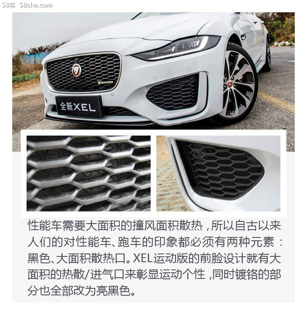 XEL的新设计分优雅版和运动版,主要差别在于车头造型。两种设计其实都采用捷豹家族化设计原因,中间的大型的格栅是老捷豹的设计中一步步演变而来。