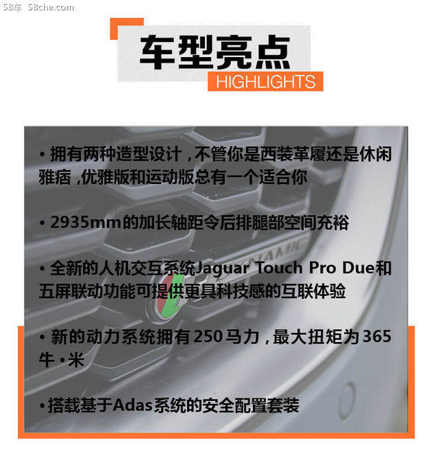 本次的捷豹XEL (配置|询价)是刚刚中期改款的新车型,体验的版本为P250,新车将在11月底正式发布及公布售价。开始前先把重点梳理一下,它的亮点都有什么。