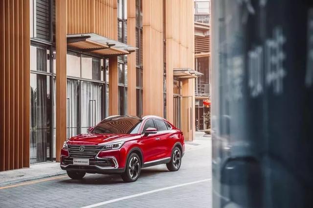 长安CS85 COUPE外观设计较为大气,前格栅采用了蝶翼式造型,内部横幅式镀铬饰条增添了一丝精致感,两侧矩阵式前大灯极为动感,下方点阵式雾灯、格栅外侧镀铬饰条等装饰,使前脸更为大气。