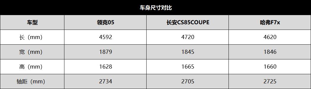 车身尺寸方面,三款车型车身尺寸基本处于同一水准,其中领克05无论是车身宽度以及轴距相比之下,拥有细微的优势。