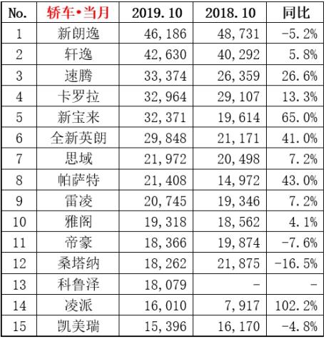 近期,10月份的汽车销量排行数据正式出炉,根据乘联会统计显示,即便在“金九银十”的销售旺季里国内车市依然保持下行的态势。10月份狭义乘用车市场销量为184.3万辆,同比下降5.7%,整体市场需求仍旧不旺盛。不过,部分车型的销售成绩却十分抢眼,比如在上个月英朗销量同比上浮41%,凌派业绩直接翻倍同比暴增102.2%。