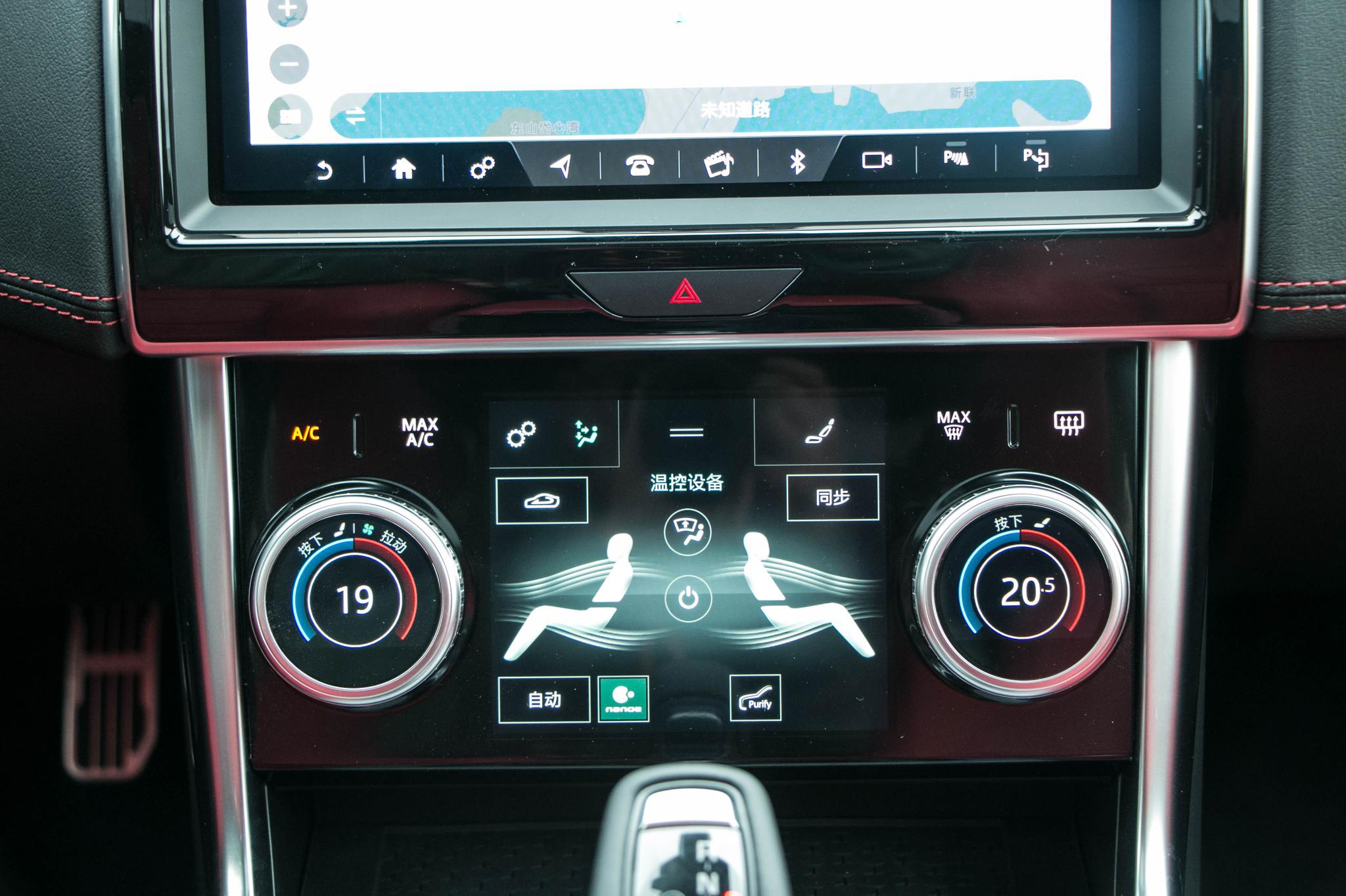 虽然新车的内饰基本维持现款车型的设计走向,但有几个显著的变化。新车换上了I-PACE的三幅式方向盘,粗壮的方向盘更有跑车的韵味,加大的换挡拨片让驾驶者更有驾驶的欲望。在便利性方面,方向盘的电动调节也取代了往前的手动调节模式。另外,方向盘匹配了触敏式按键和滚轮操作按键,实际操作的质感反馈也尤为不错。