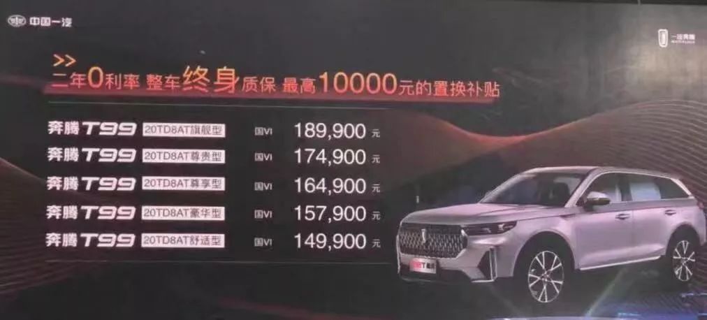在活动的最高潮,一汽轿车销售有限公司东北区域市场经理刘立群在现场正式揭晓了奔腾T99的官方指导价,本次上市的奔腾T99共有5款车型。